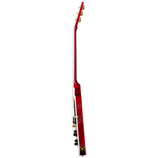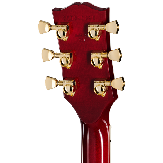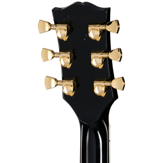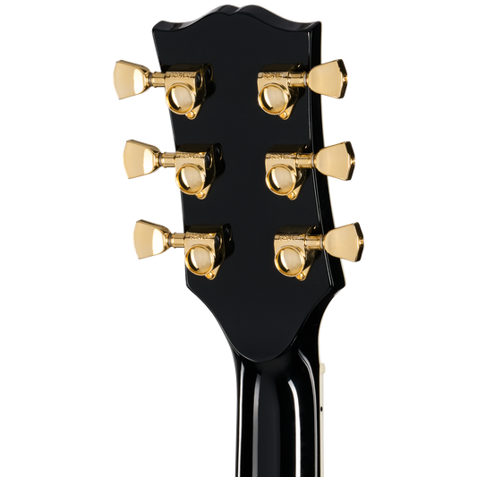 The bound headstock hosts the famous Custom Split Diamond headstock inlay, also in mother-of-pearl, and the guitar’s classic aesthetic is truly set off by gold hardware, including an aluminum Nashville Tune-O-Matic™ bridge, an aluminum Stop Bar tailpiece, and smooth-turning Grover® Rotomatics® with Keystone button tuners for stability.
