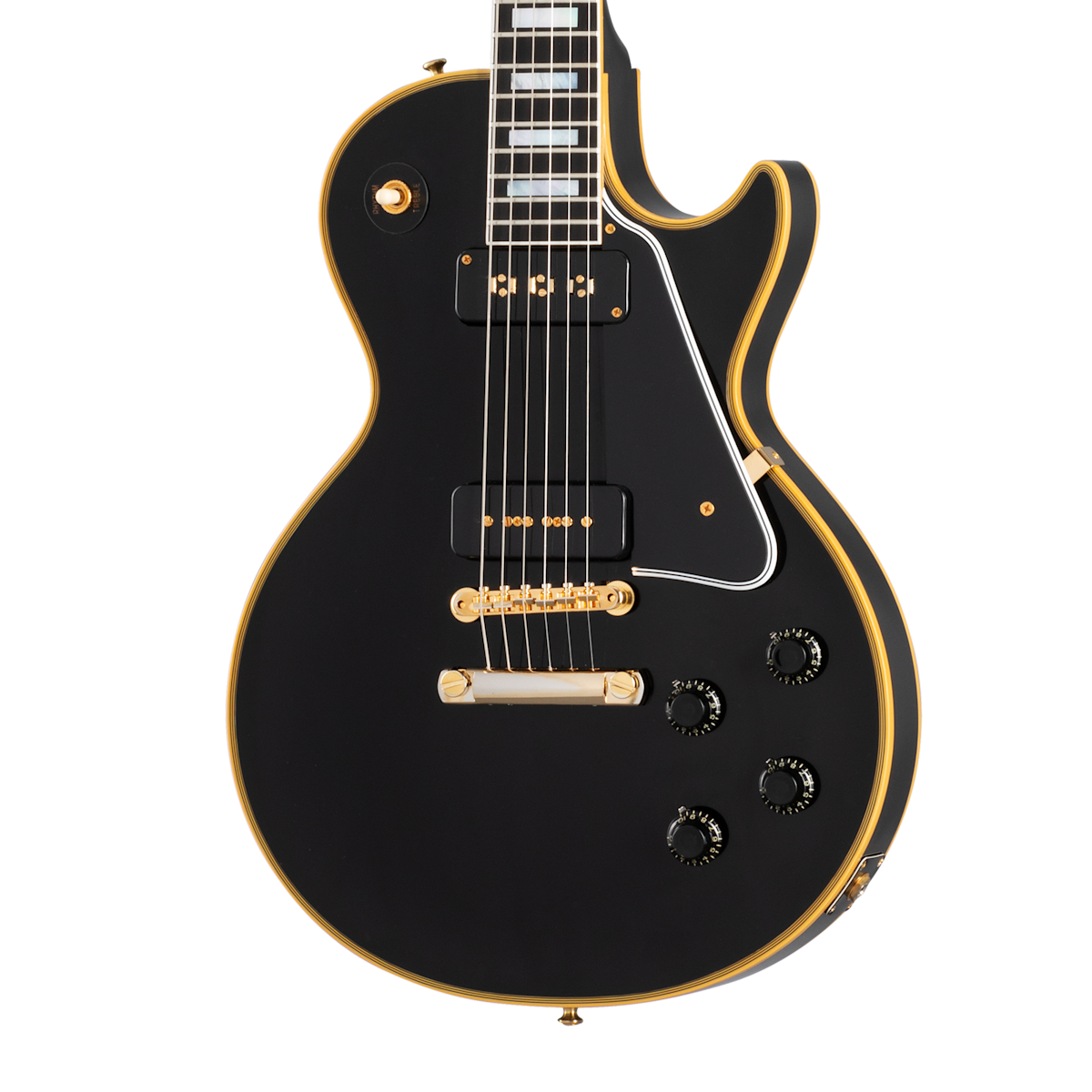 While some were produced in 1953, 1954 was the first full year for the classy-looking, tuxedo-inspired Gibson Les Paul™ Custom. The Custom was the first guitar to come equipped with the now-legendary ABR-1 Tune-O-Matic™ bridge. Like the earliest Les Paul Customs, this Gibson Custom reissue is equipped with a Staple pickup in the neck position and a Soapbar P-90 pickup in the bridge position, along with gold hardware. It also has a one-piece mahogany body, Kluson® Waffleback® tuners with plastic buttons, CTS® potentiometers, paper in oil capacitors, and comes with a Custom Shop hardshell case and Certificate of Authenticity.