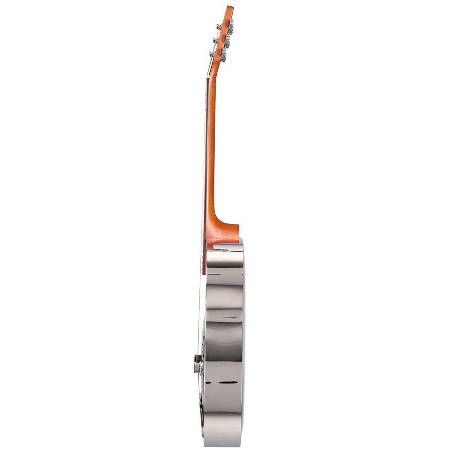 Classic Resonator Body: The body of the Dobro Hound Dog M-14 is made from bell brass with nickel plating with a 12 1/8” lower bout width, a 10 3/8” upper bout width, and a depth of 3 1/2”. The biscuit resonator delivers distinctive, classic Dobro tones. The tone of the Hound Dog M-14 is rich and full, with quick decay that makes both fingerpicking and slide smooth and easy in all registers.
