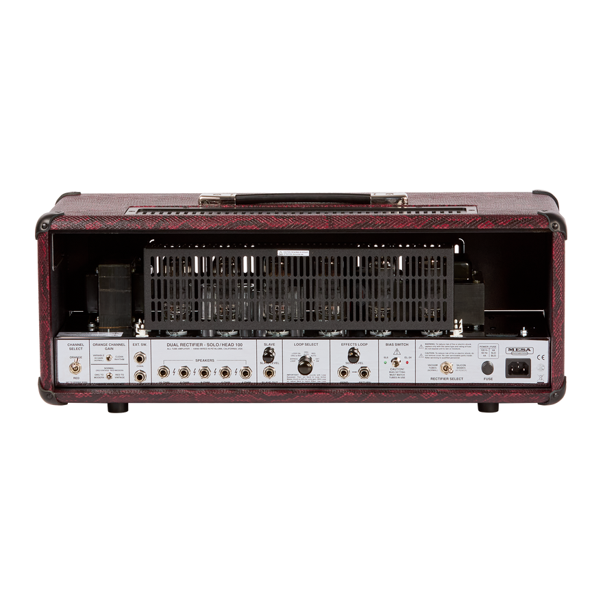You’re sure to turn heads and draw admiring looks with this Custom Configured version of the 90s Dual Rectifier Head, dressed up in Burgundy Python vinyl that’s paired with a Black diamond plate front panel, and accented with Black leather corners and a large Black handle. This Custom Configured 90s Dual Rectifier Head is only available from MESABoogie.com and at the Gibson Garage locations, and only for a limited time, so order yours while you still can.