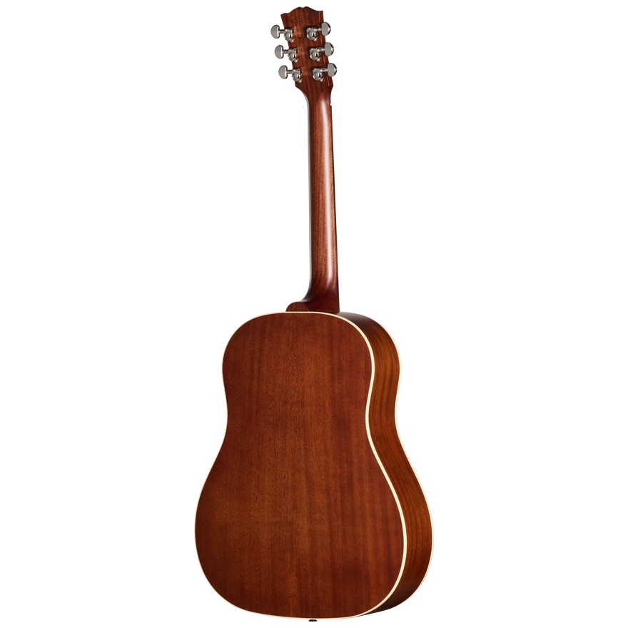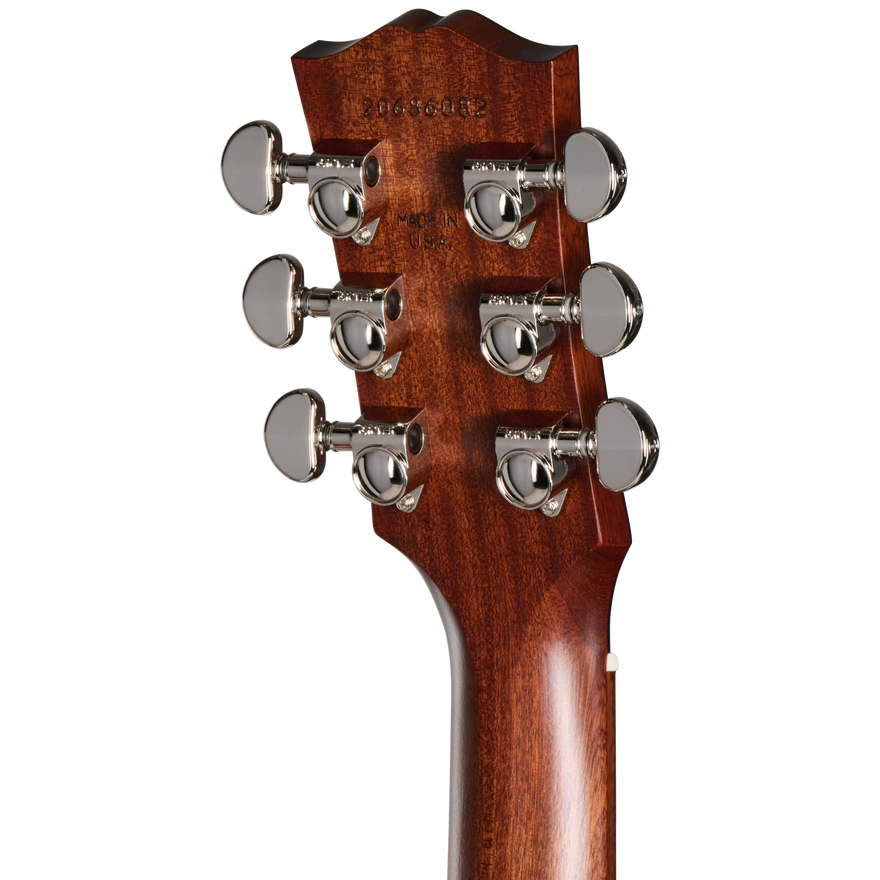First introduced in 1942, the Gibson J-45™ has remained a mainstay Gibson acoustic model. It has earned its name as “The Workhorse” due to its wide acceptance, no-nonsense simplicity, and understated elegance. It’s one of the most recorded acoustic guitars in history and Gibson’s best-selling acoustic model of all time. Handcrafted with care in Bozeman, Montana, by Gibson’s expert acoustic luthiers, the new Gibson J-45 Special offers players a USA-built Gibson acoustic guitar at a very attractive price. The J-45 Special has a round shoulder body constructed using genuine solid mahogany for the back and sides and a solid Sitka spruce top. The top is reinforced with our traditional scalloped X-bracing. This combination of tonewoods delivers a warm, balanced tone with excellent dynamic range that is great for any musical genre. The “concert depth” body is slightly thinner than on a J-45 Standard, giving the J-45 Special a leaner and tighter bass response that sits perfectly in the mix and also makes it easier to hold. The utile neck is attached to the body with a compound dovetail neck-to-body joint, and like all Gibson acoustic guitars, it is affixed with hot hide glue. The neck has a comfortable and fast-playing SlimTaper™ profile, and the rosewood fretboard has a 12” radius and is adorned with simple mother-of-pearl dot inlays and is fitted with 20 standard frets. The traditional belly-up rosewood bridge is equipped with a TUSQ® saddle, and the nut and bridge pins are also TUSQ. High-quality Grover® Rotomatic® tuners ensure solid tuning stability. The J-45 Special is finished in satin nitrocellulose lacquer. It comes with an L.R. Baggs Element Bronze under-saddle piezo pickup with active electronics and an easily accessible soundhole-mounted volume control pre-installed for studio-quality plug-and-play anywhere. The J-45 Special also comes with a premium soft shell case.