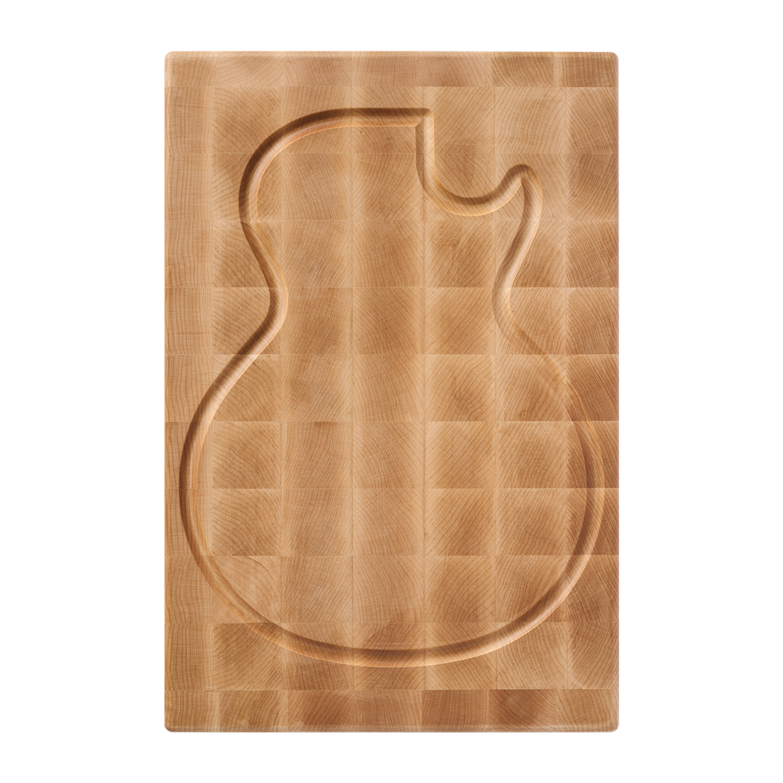 This professional-grade, 100% end-grain maple cutting board is crafted in Nashville, Tennessee, from wood repurposed from electric guitar making.