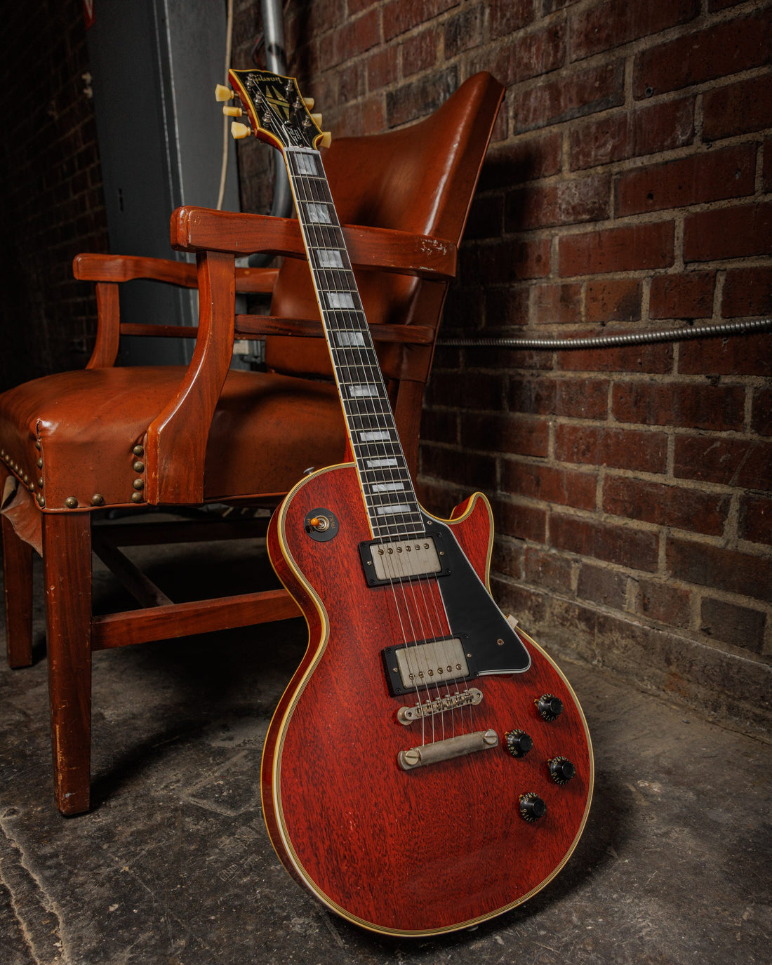 Featuring an Antique Cherry finish with nickel hardware, this 1957 Les Paul Custom reissue’s colorway somewhat resembles the standard aesthetics found on a 1961 SG Standard. The Antique Cherry finish also shows off the natural woodgrain of the one-piece mahogany body—unlike the 1957 Les Paul Standard, this model does not have a maple top, and the all-mahogany tone brings a subtly different Les Paul flavor to the mix.