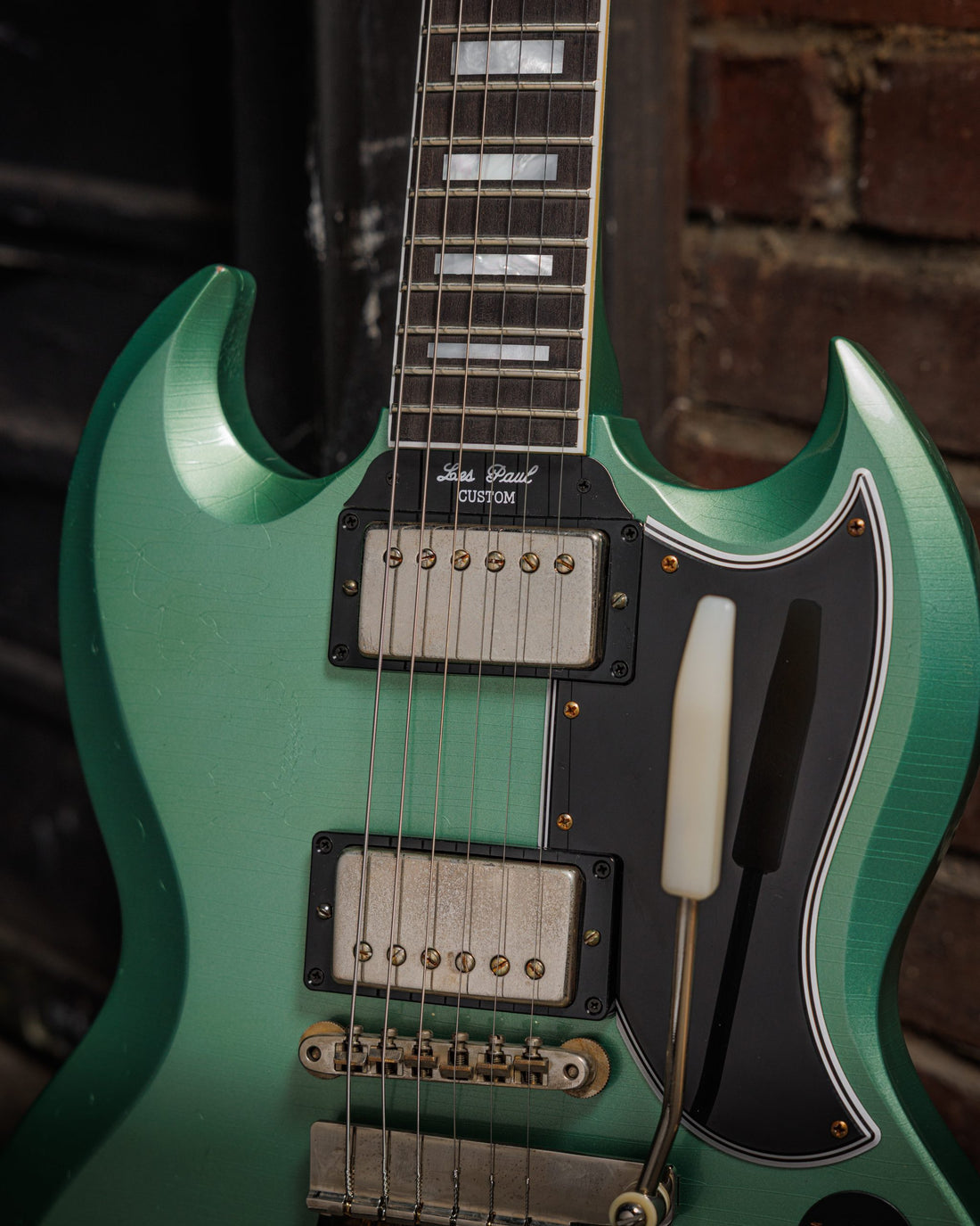 Gibson shipped only a handful of Les Paul Custom and SG™ Custom guitars in special finishes in the late 1950s and early 1960s, and those unicorns inspired the design of these two guitars. Nearly 70 years later, the tradition continues with the 1957 Les Paul Custom 2-Pickup in Light Aged Antique Cherry and 1963 Les Paul SG Custom With Maestro Vibrola in Light Aged Inverness Green.