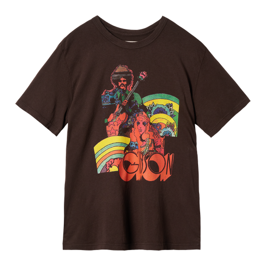 This short-sleeved 7 oz. "vintage midweight" tee features funk-inspired artwork. It was patterned, cut, sewn, and screen-printed here in the USA from American-made fabric. This garment was also washed and preshrunk.