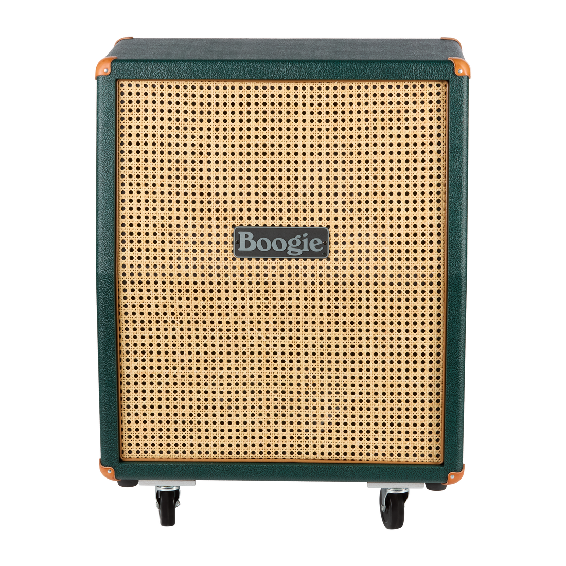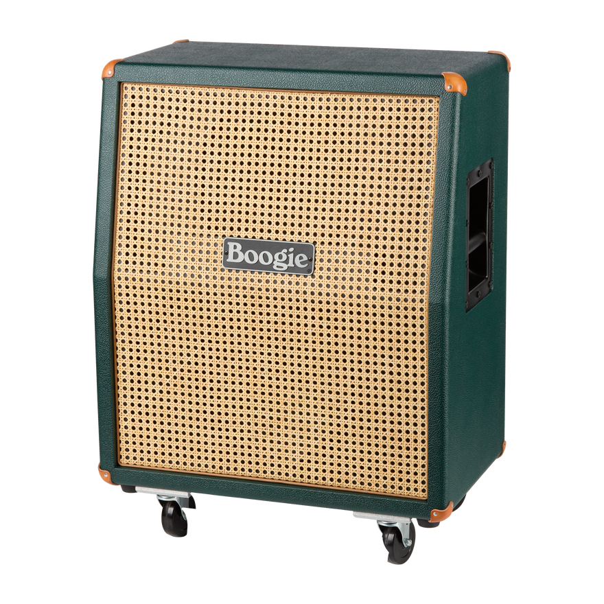 Show off your impeccable taste and style with this Custom Configured version of the 2x12 Vertical/Slant Rectifier Cabinet. It is loaded with two Celestion® Vintage 30 speakers and customized with Emerald Bronco vinyl that is paired with a Wicker grille and accented with tan piping, tan leather corners, and a Boogie badge.
