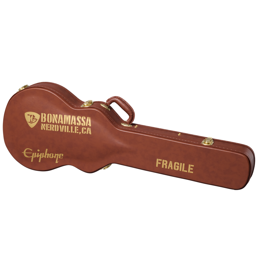 Renowned guitarist Joe Bonamassa has one of the world’s most enviable guitar collections. One prized instrument is a 1955 Les Paul Standard with a very rare Copper Iridescent finish that was originally created for display at the 1955 NAMM Show. As Joe noted, “From a distance, it looks brown, but in direct light, it has gold metal flake in the finish.” Epiphone’s Joe Bonamassa 1955 Les Paul Standard faithfully recreates this special guitar. It features the same Copper Iridescent color, a pair of Epiphone P-90 PRO pickups wired to CTS® potentiometers and Mallory™ capacitors, a Custom ’59 Rounded C neck profile, long neck tenon, and a “Nerdville” graphic hardshell case.