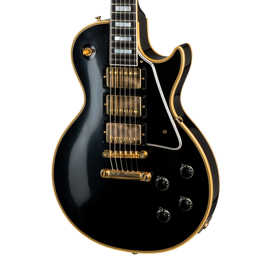 With its elegant lines and Ebony/Pearl/Gold aesthetic, the 1957 Les Paul Custom is easily one of the most iconic and beautiful guitars ever made. It features a body carved out of a single large piece of solid mahogany, unique among Les Paul models. The resulting dark mid-range tone from the body pairs perfectly with its bright-sounding solid Ebony fingerboard. All together, it's the pinnacle of guitar craftsmanship, design and tone. Gibson Custom Shop is proud to revive every last detail of the original "Black Beauty" for this '57 Les Paul Custom Reissue, from the dimensions and contours to the precise inlay patterns to the entire ownership experience.