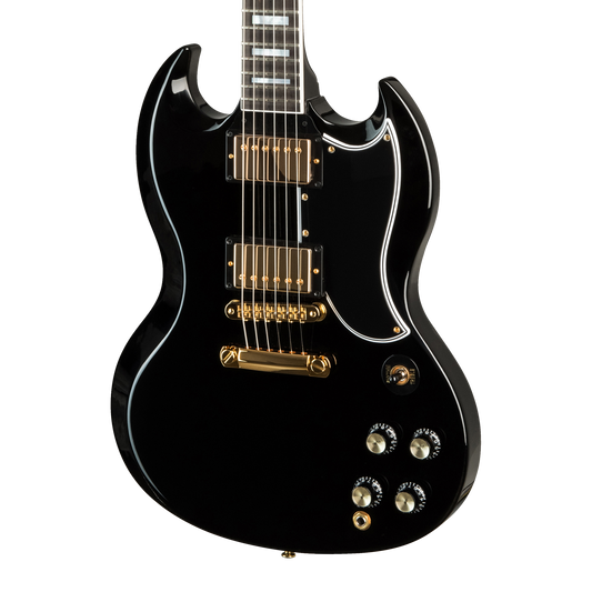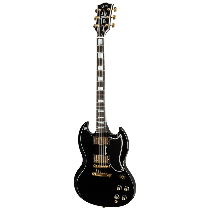 This recent Custom Shop addition takes the engine and aesthetics of the iconic Les Paul Custom and applies them to the SG platform. The result is a huge-sounding, fast-playing and classy-looking instrument that will bring out the best in any player. The solid ebony fingerboard projects chords and notes with clarity and sustain, while the 490R and 498T humbuckers compliment a wide range of sonic possibilities, from clean jazz to the heaviest distortion.