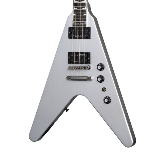 Dave Mustaine is the legendary guitarist, vocalist, songwriter, and founder of the multi-platinum selling and Grammy® Award-winning band, MEGADETH. His new Gibson Dave Mustaine Flying V™ EXP Artist model delivers the powerful, heavy sound and exceptional playing performance that he demands. The 25.5” scale mahogany neck has an ebony fretboard with a compound fretboard radius, 24 medium jumbo frets, mother of pearl “teeth” inlays, an Explorer™-style headstock with Grover® Mini Rotomatic® tuners with Kidney buttons, and a Graph Tech® nut. The mahogany Flying V-style body is equipped with a Tune-O-Matic™ bridge, a Stop Bar tailpiece, and a Dave Mustaine signature Seymour Duncan® Thrash Factor pickup set. The Antique Natural and Silver Metallic nitrocellulose lacquer finishes are complemented by black chrome hardware. A hardshell case is also included.