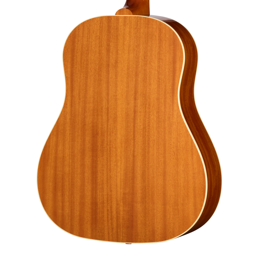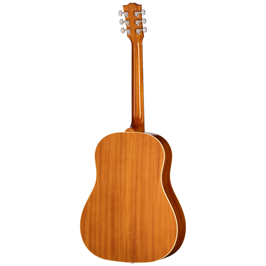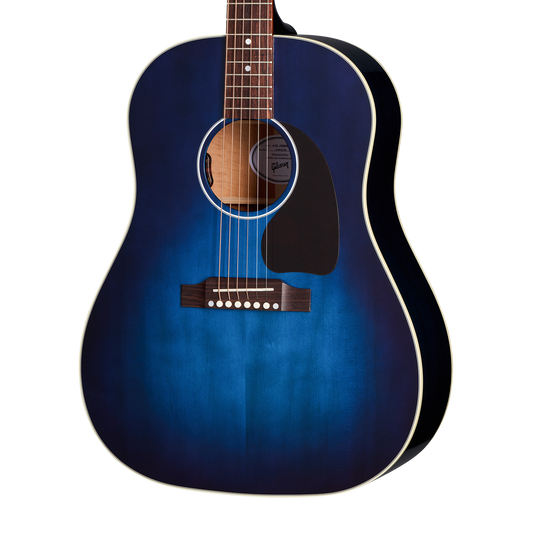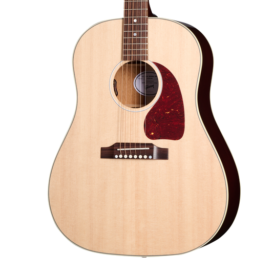The J-45™ is the best-selling Gibson acoustic guitar model of all time. Nicknamed "The Workhorse" and first introduced in 1942, this iconic acoustic has become the cornerstone of its round-shoulder, dreadnought line. World-renowned for its full, balanced expression, warm bass, and excellent projection, the J-45 has been refined to carry this legacy to new heights. The Gibson J-45 Standard delivers a sound with incredible dynamic range, warm mids, and a tight, punchy bass due in part to its round-shoulder body and sides that are made from solid mahogany and its solid Sitka spruce top; it's a classic tonewood recipe that is ideal for all musical styles. The mahogany neck has a comfortable and fast-playing SlimTaper™ profile and is topped with a rosewood fretboard that is outfitted with 20 standard frets and adorned with simple mother-of-pearl dot inlays. The neck is fitted to the body with a compound dovetail joint, ensuring outstanding tonal transfer and sustain. The traditional rosewood belly-up bridge is outfitted with a TUSQ® saddle and bridge pins. A low-friction TUSQ nut, along with the quality Grover® Rotomatic® tuners, ensures solid tuning stability, so you can spend more time playing and less time tuning up. The J-45 Standard is equipped with an L.R. Baggs™ VTC under-saddle pickup and active preamp, so it is stage and studio-ready from the moment you take it out of the included hardshell case.