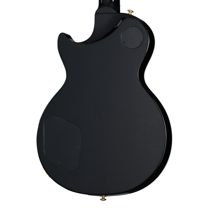 Gibson is excited to announce the return of the Les Paul Supreme. With a refreshed feature set, it is bound to overshadow everything else in sight and be one of the most exciting new releases of the year. This exclusive model features a maple top on a mahogany body with Ultra-Modern Weight Relief. The mahogany neck has an ebony fretboard with a compound radius and Super Split Block mother-of-pearl inlays. The neck has a Modern Contoured Heel for exceptional upper fret access, and the headstock is adorned with a striking new mother-of-pearl inlay inspired by a design from the 1940s that was discovered in the Gibson archives. The three pickups, two Burstbucker Pros (neck and middle positions), and one Burstbucker Pro + (in the bridge/lead position) are paired with individual push/pull Volume controls for flexible coil tap switching and a Master Tone control. The Ebony nitrocellulose gloss lacquer finish is elegantly highlighted with gold hardware, making this a great-sounding and highly flexible instrument and an exceptionally beautiful-looking modern rock machine. A hardshell case is also included.