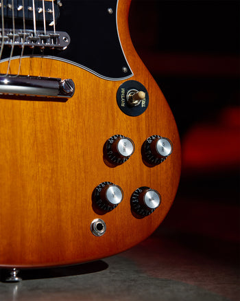 The Sadler Vaden SG Standard features chrome-plated hardware, including an aluminum Nashville Tune-O-Matic™ bridge and an aluminum Stop Bar tailpiece, which provide full adjustability for action height and individual string intonation.