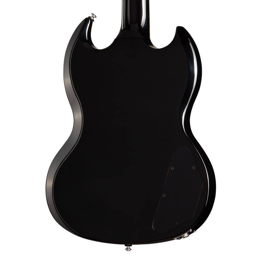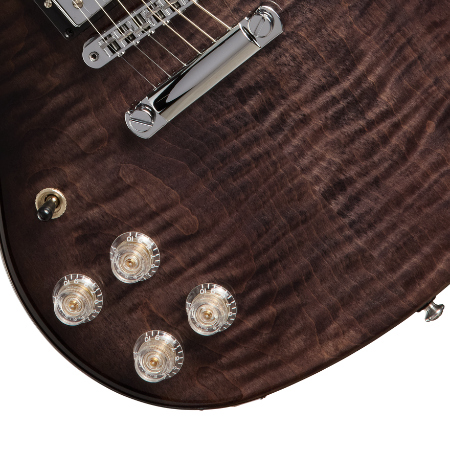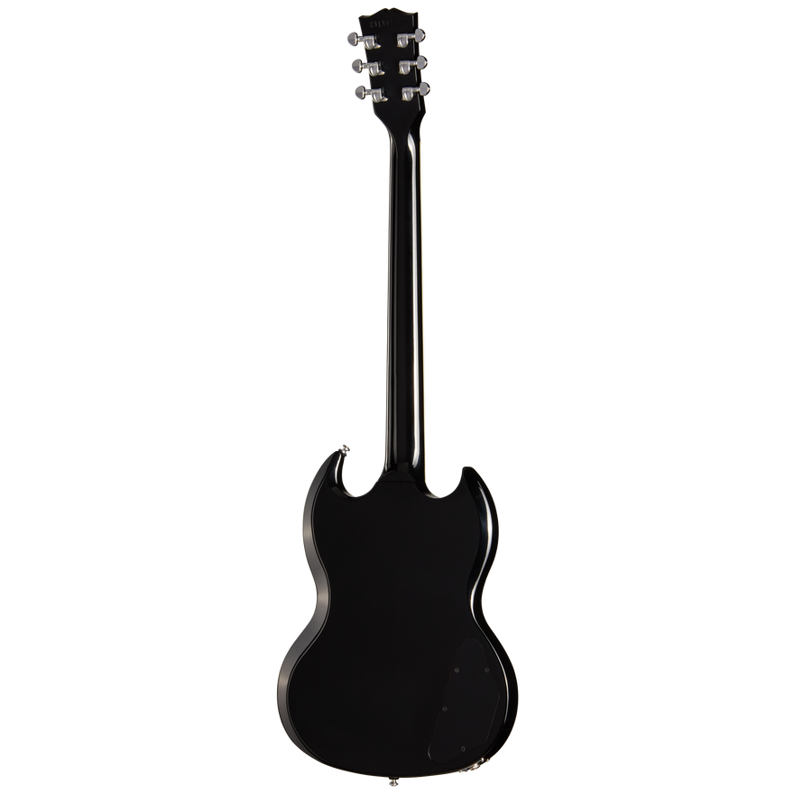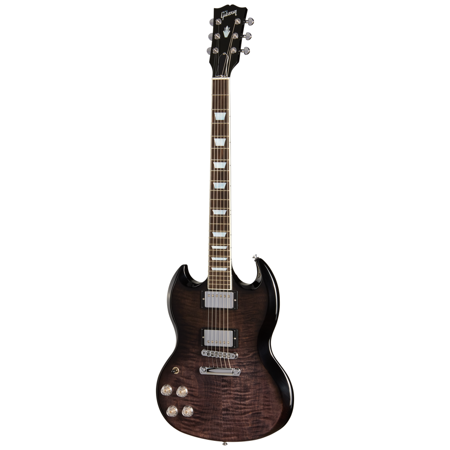 The newly refreshed Gibson SG™ Modern bridges the gap between two legendary designs. It retains the sleek, double-cutaway silhouette that made the SG an icon while featuring a mahogany back capped with an AA maple top—a pairing often found on Les Paul™ models. This combination delivers all the resonant warmth and sustain players expect from a Gibson guitar. An asymmetrical SlimTaper™ mahogany neck provides a comfortable grip at every position, and the 24-fret ebony fingerboard has a compound radius that keeps chording smooth near the nut and facilitates effortless bends further up. Mother-of-pearl trapezoid inlays lend an upscale touch, and Grover® Mini Rotomatics® tuners maintain precise tuning through everything from subtle riffs to full-on shredding. The Tune-O-Matic™ bridge and Stop Bar tailpiece anchor the strings, ensuring accurate intonation and plenty of sustain. At the heart of the SG Modern’s versatile sound are Burstbucker™ Pro neck and Burstbucker Pro + lead pickups with Alnico 5 magnets. Both volume knobs include push/pull coil taps, offering a choice between Gibson humbucker™ fullness and a single-coil bite that recalls the classic P-90 voice. The result is an instrument that comfortably covers a wide range of styles—from laid-back blues and R&B to aggressive rock and metal. Clear Top Hat knobs complete the contemporary aesthetic, giving a sleek finishing touch to this modern reimagining of a timeless classic. By combining elements of both the SG and Les Paul families, the SG Modern delivers the agility and attitude of an SG with the added resonance and sonic depth usually associated with Les Pauls. This fresh take on a beloved design will have you exploring new sonic frontiers and adding your voice to the SG’s classic heritage