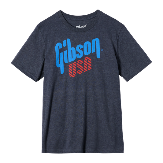 The Gibson USA Tee features the modern Gibson USA logo in blue and red worn by Gibson's luthiers in Nashville, TN.